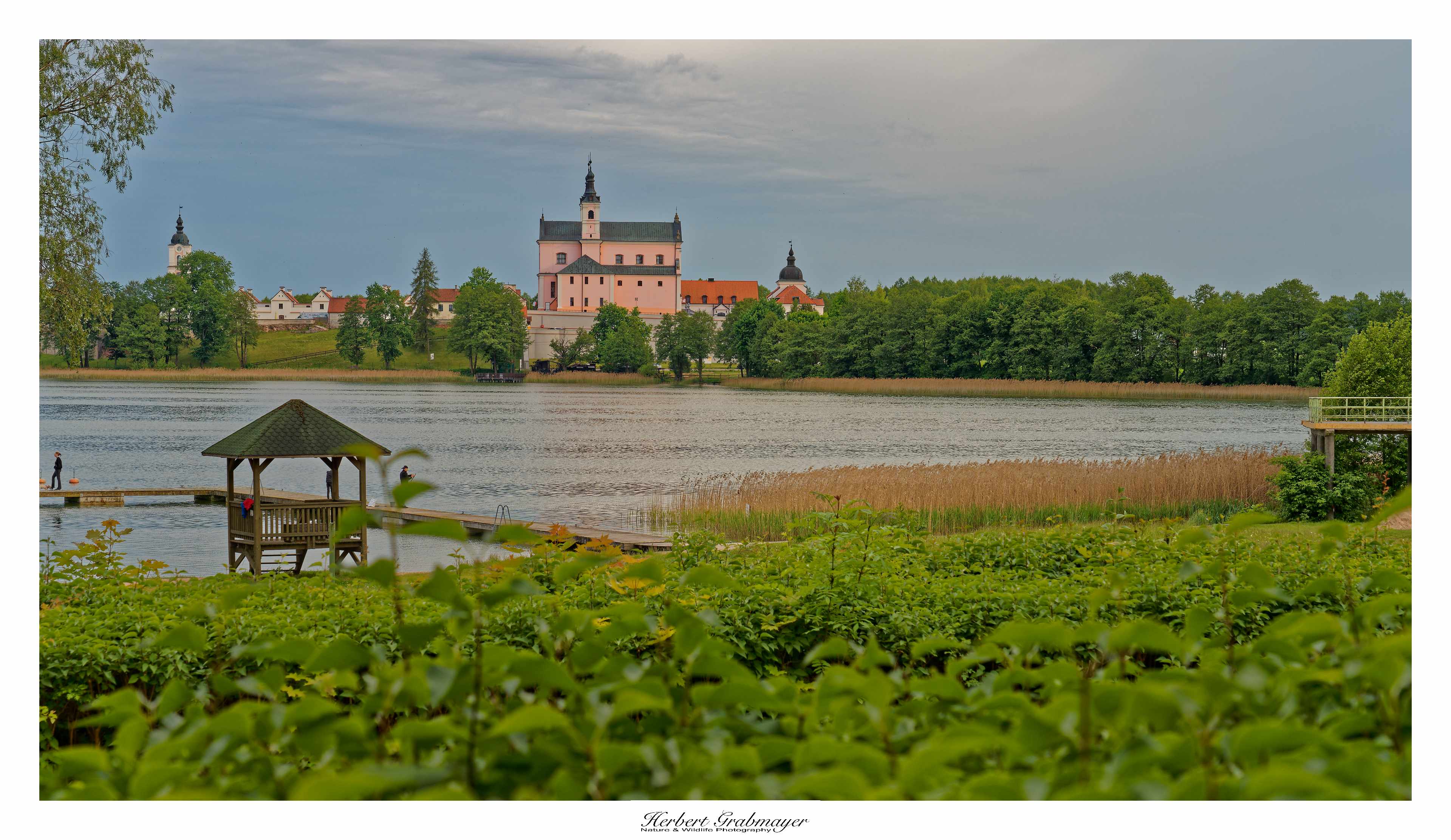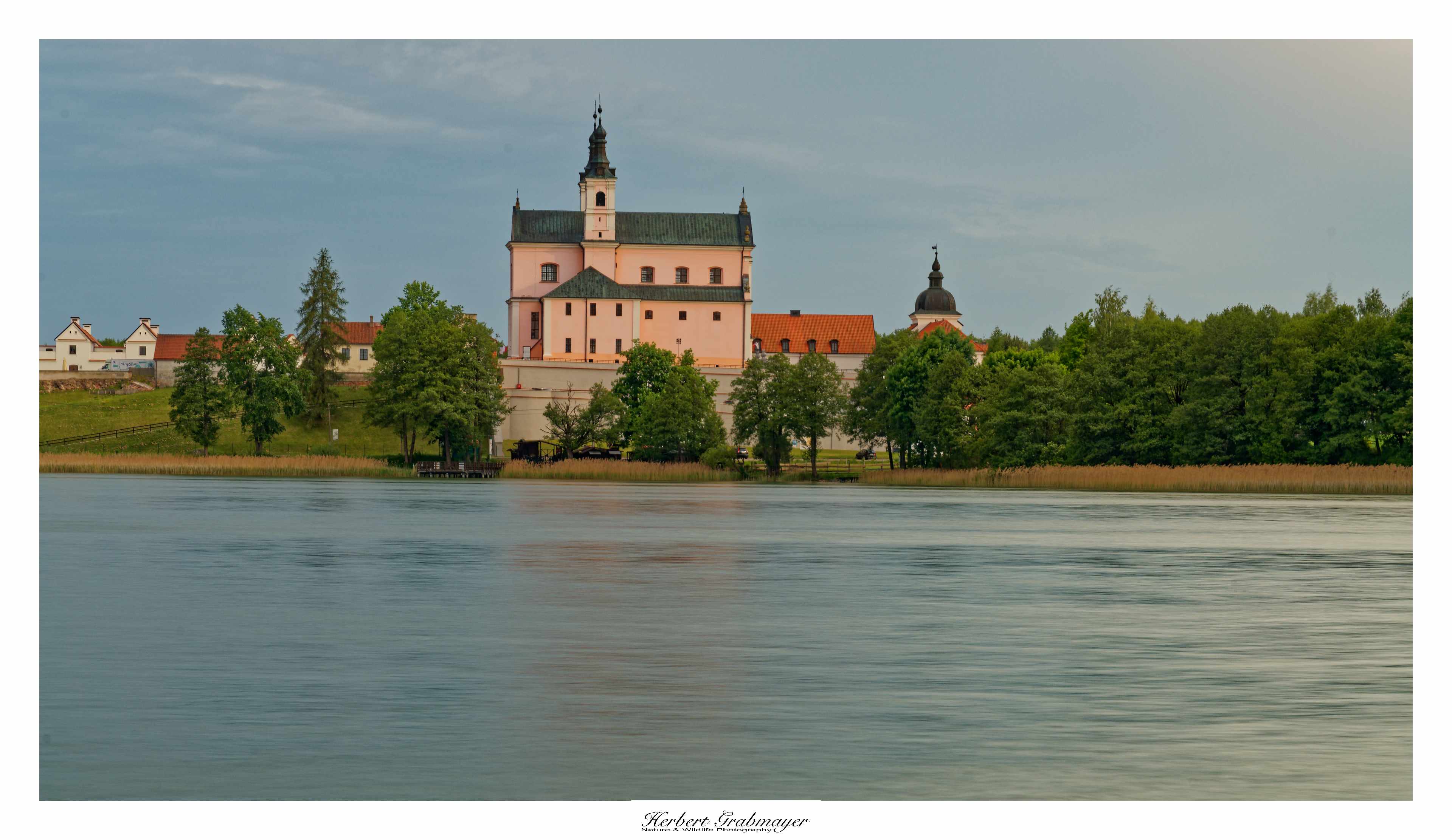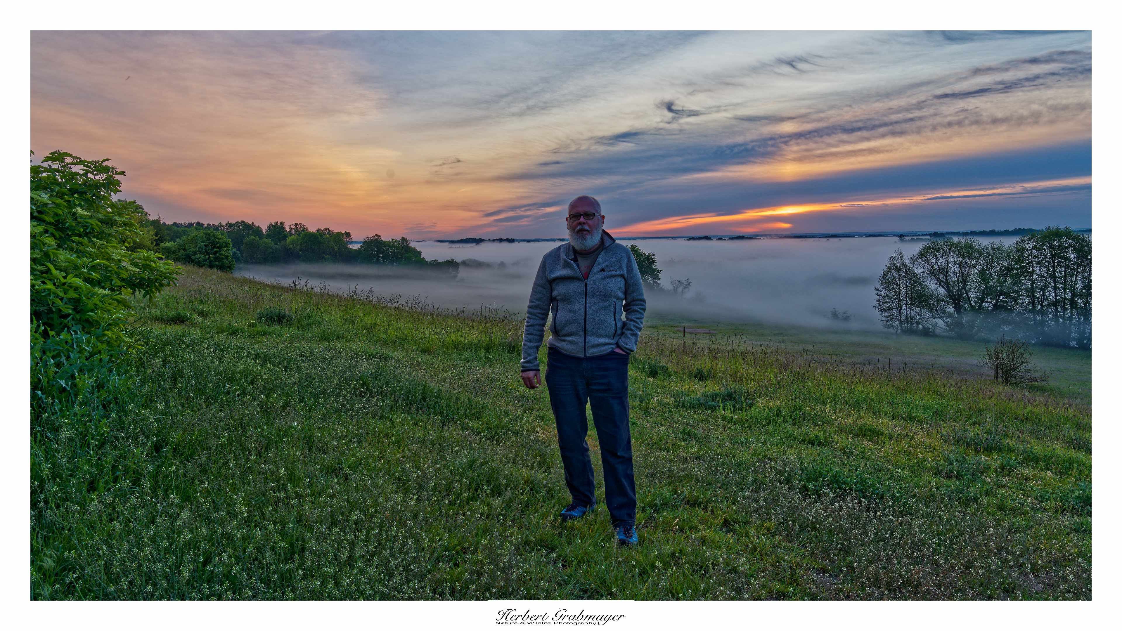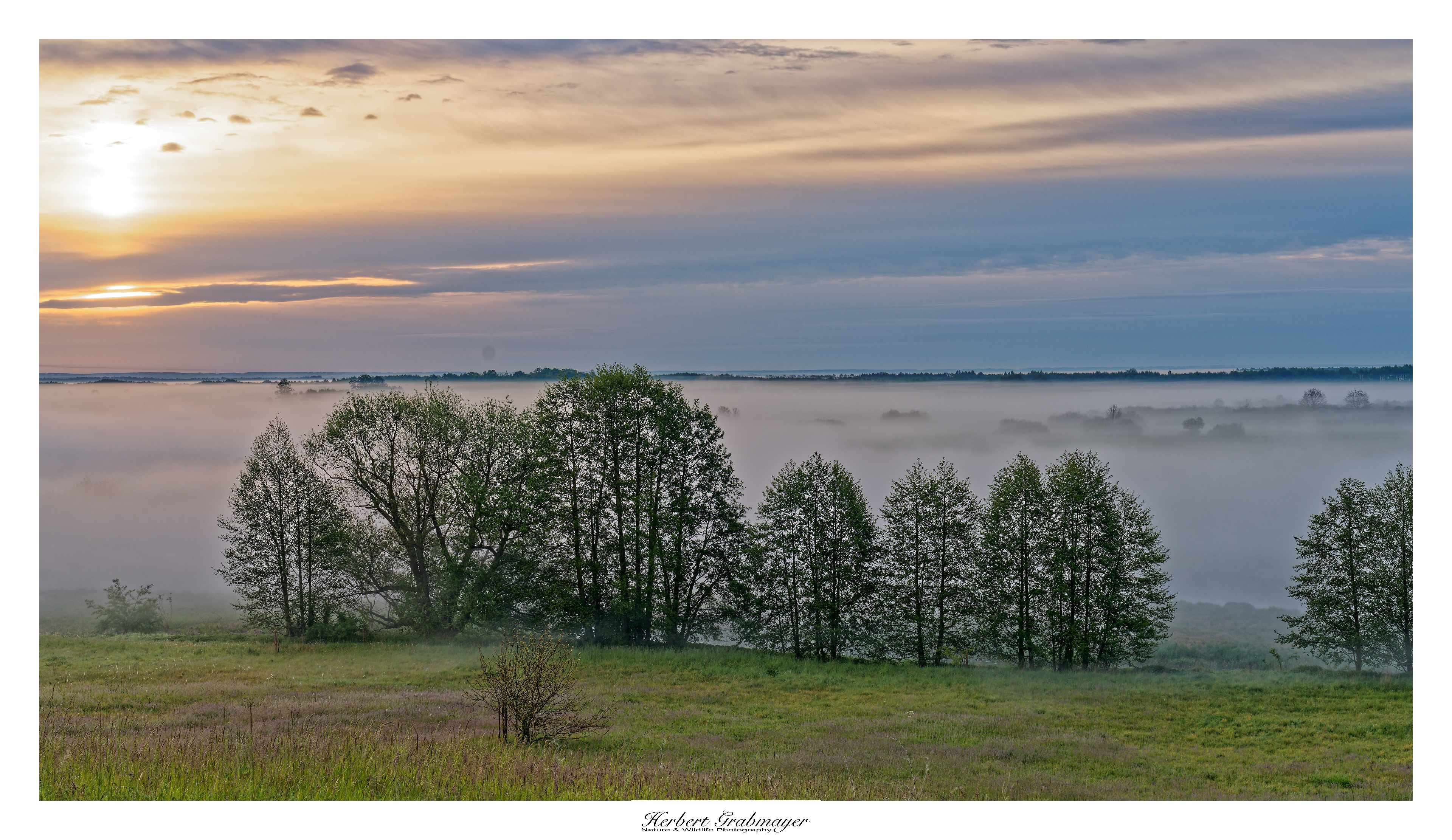 So trocken kann es gar nicht sein das sich nicht Morgennebel über dem Flußtal bildet. Es ergab aber einen schönen Sonnenaufgang. Hab mich selbst aufgenommen als Beweiß das ich auch wirklich die Reise mache. Vögel waren zu weit weg und die Luft war zu heiß um auf diese Entfernung zu fotografieren. Also machte ich mich gegen Mittag auf in den Wigry Nationalpark.
