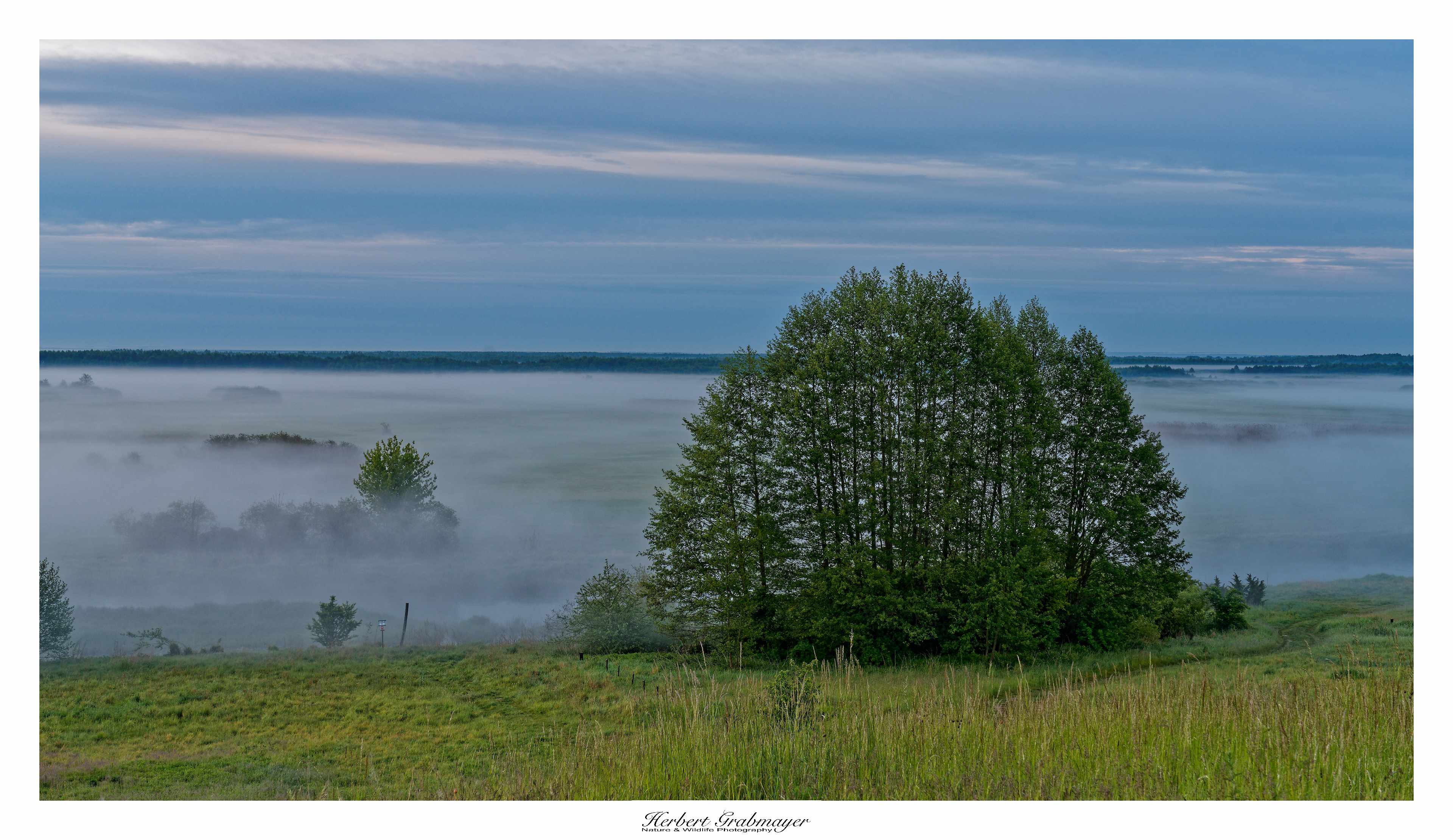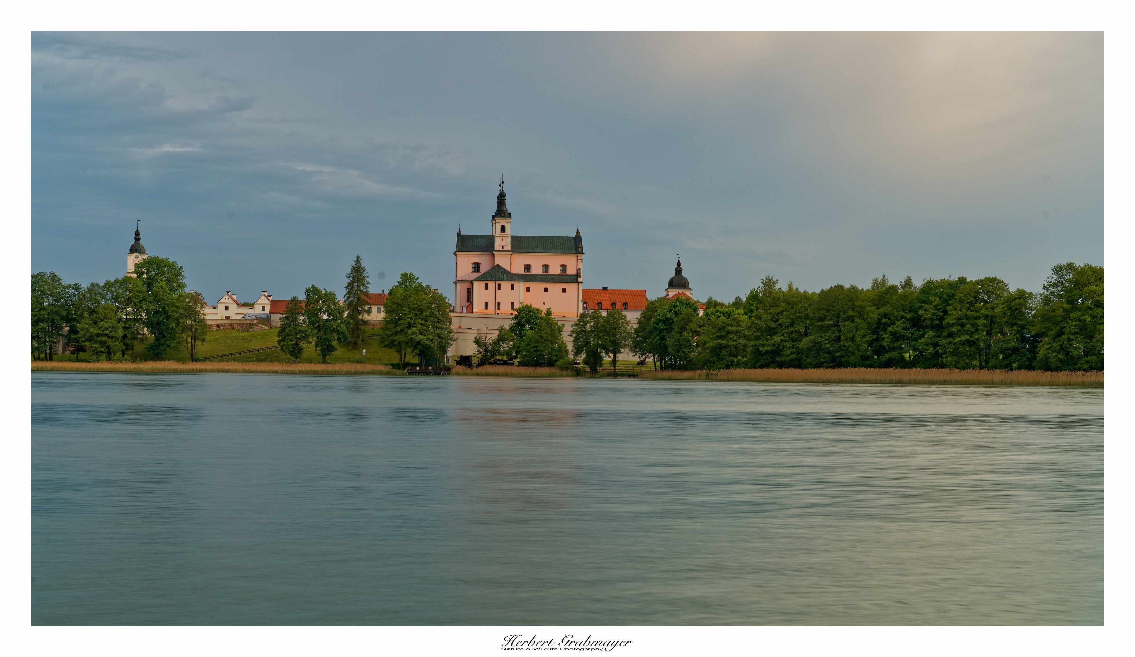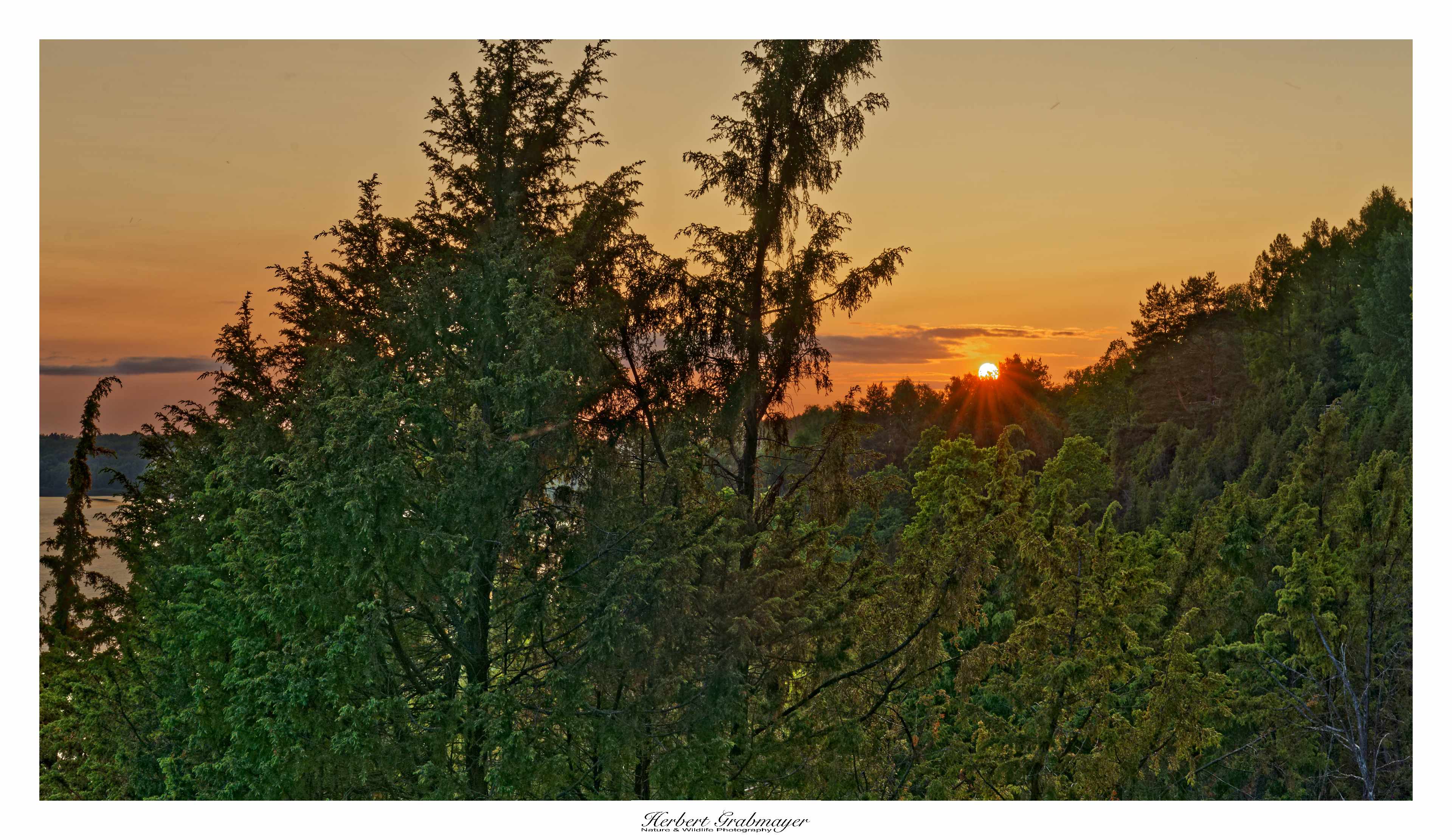 So trocken kann es gar nicht sein das sich nicht Morgennebel über dem Flußtal bildet. Es ergab aber einen schönen Sonnenaufgang. Hab mich selbst aufgenommen als Beweiß das ich auch wirklich die Reise mache. Vögel waren zu weit weg und die Luft war zu heiß um auf diese Entfernung zu fotografieren. Also machte ich mich gegen Mittag auf in den Wigry Nationalpark.