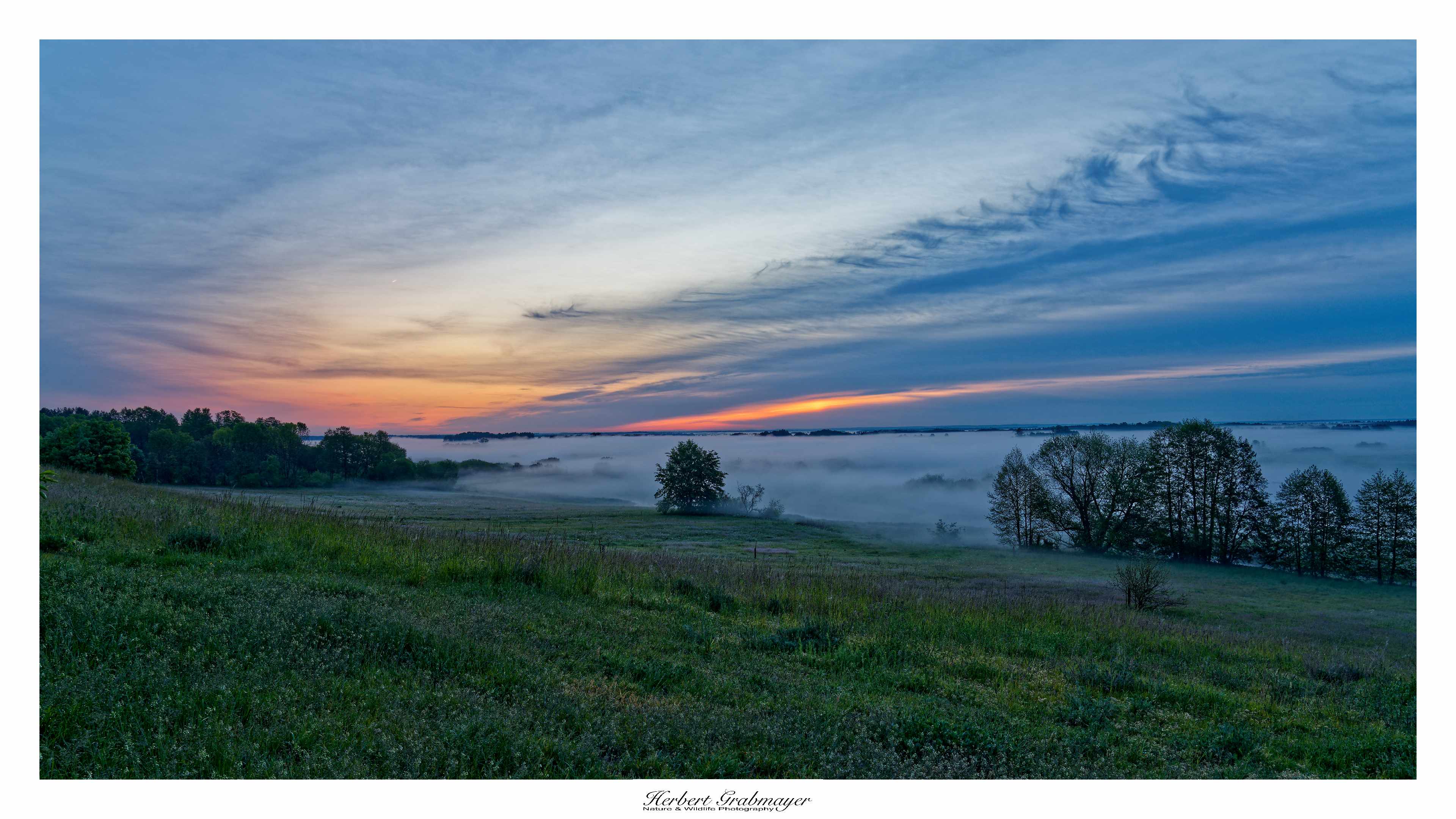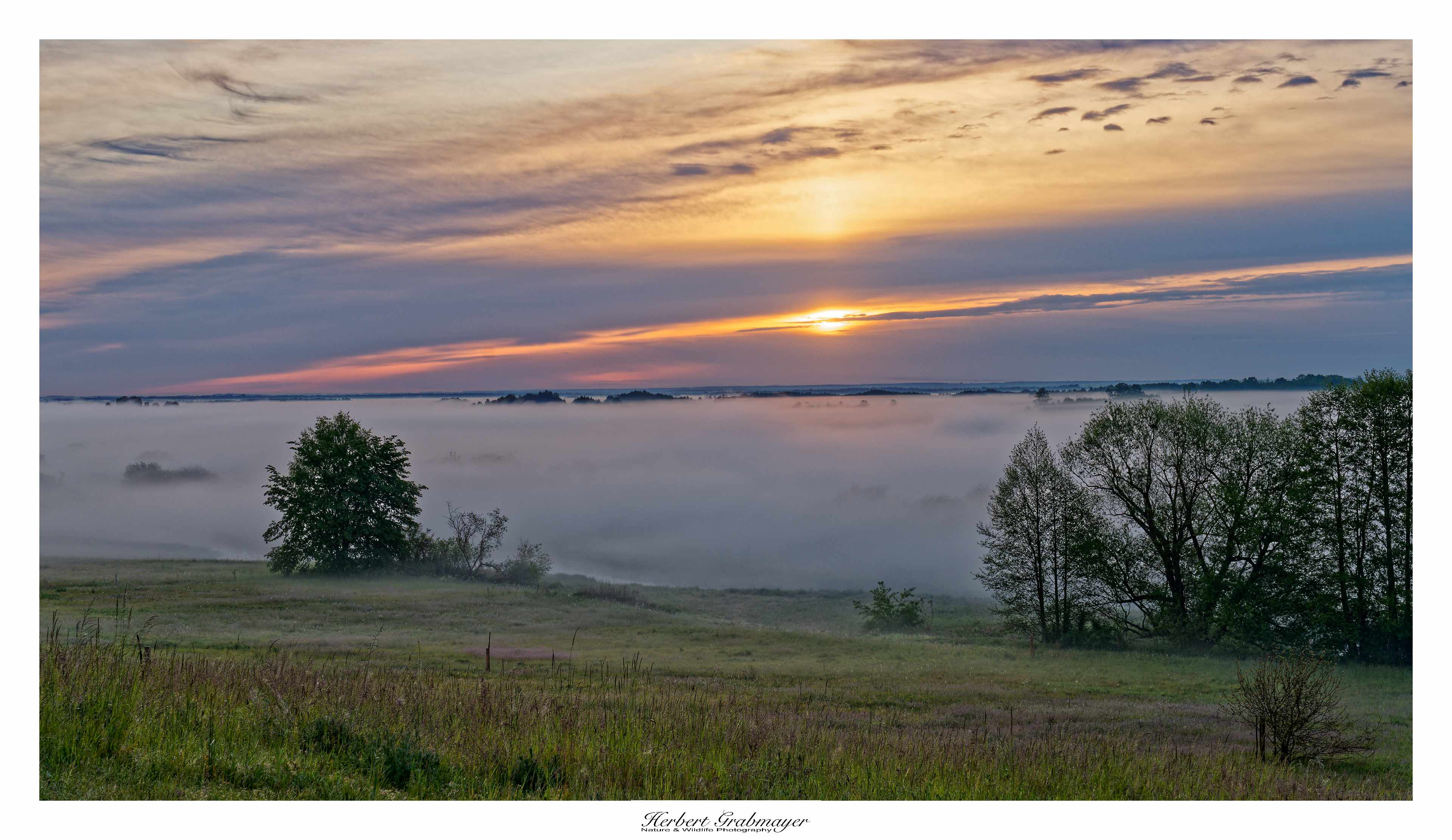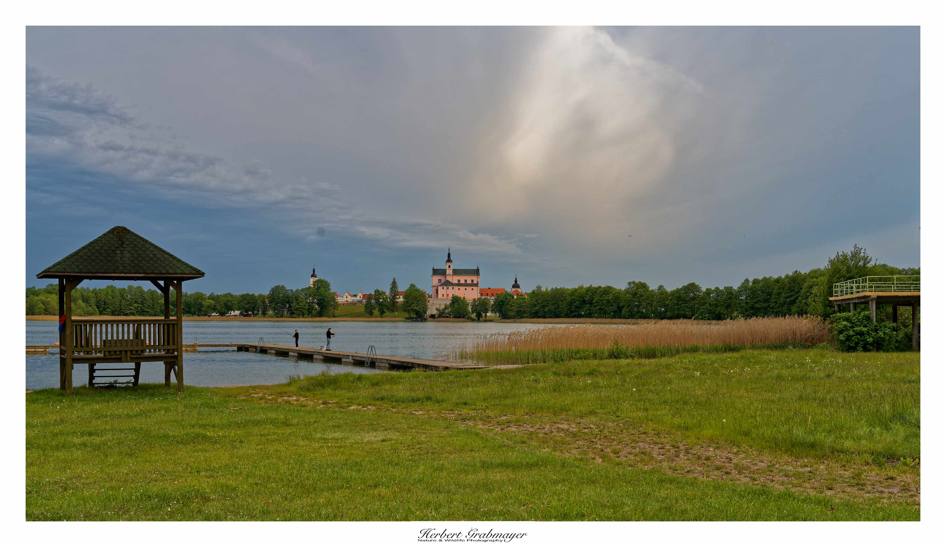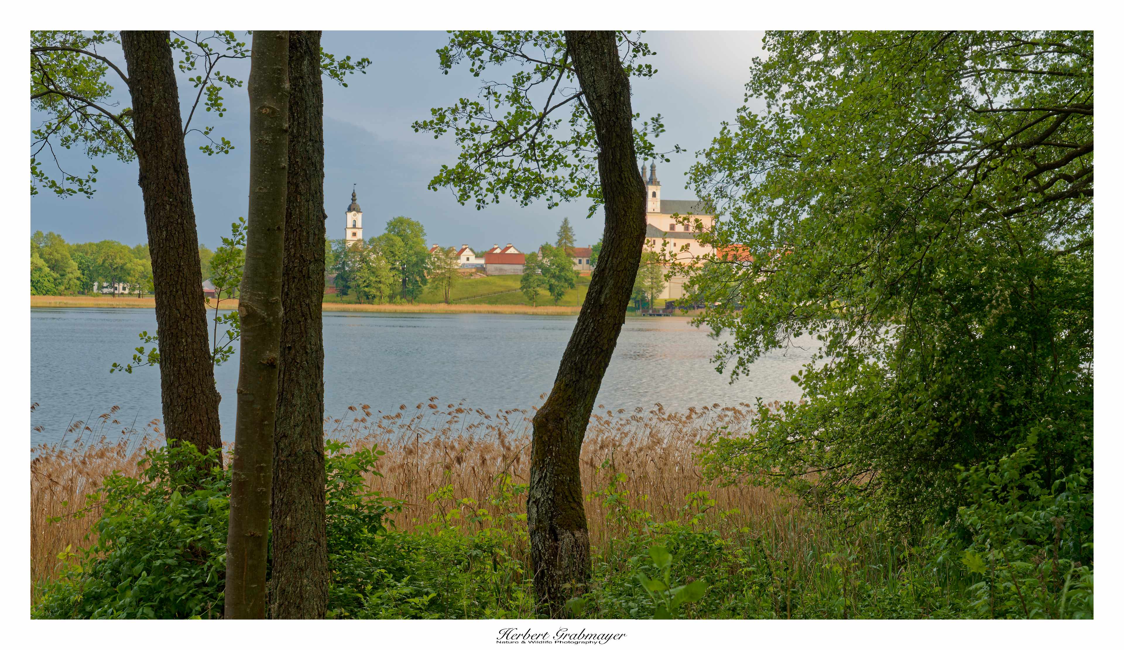 So trocken kann es gar nicht sein das sich nicht Morgennebel über dem Flußtal bildet. Es ergab aber einen schönen Sonnenaufgang. Hab mich selbst aufgenommen als Beweiß das ich auch wirklich die Reise mache. Vögel waren zu weit weg und die Luft war zu heiß um auf diese Entfernung zu fotografieren. Also machte ich mich gegen Mittag auf in den Wigry Nationalpark.