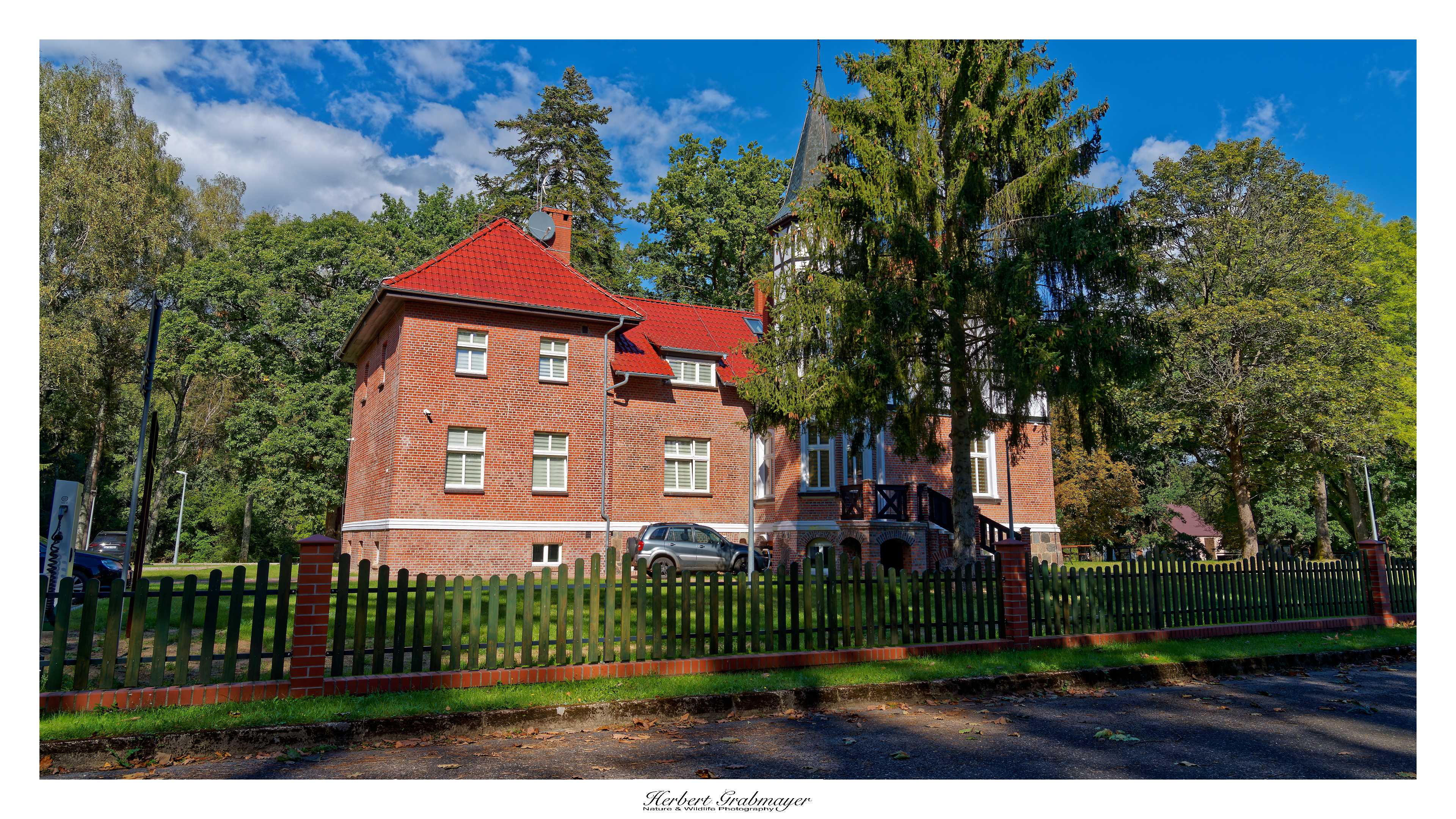 Am Nachmittag machte ich mich von der anderen Seite der Drawa auf den Weg. Hier sah man teilweise wesentlich beeindruckender wie sich die Drawe über die Zeit in die Tiefe gegraben hatte. Jetzt fand ich auch die Brücke die diesen Weg zu einem Rundweg auf der anderen Seite zurück ermöglicht. Diese hatte ich Vormittag auf der anderen Seite nicht gefunden. Teilweise ist die Ausschilderung der Wanderwege nur sehr rudimentär gegeben. Das Bauwerk im ersten Bild ist die lokale Forstverwaltung in einem typischen Haus der Gegend in Backsteinbauweise. Und die untergeordneten Straßen sind teilweise knapp 1 Spur mit Sandstreifen zum ausweichen.