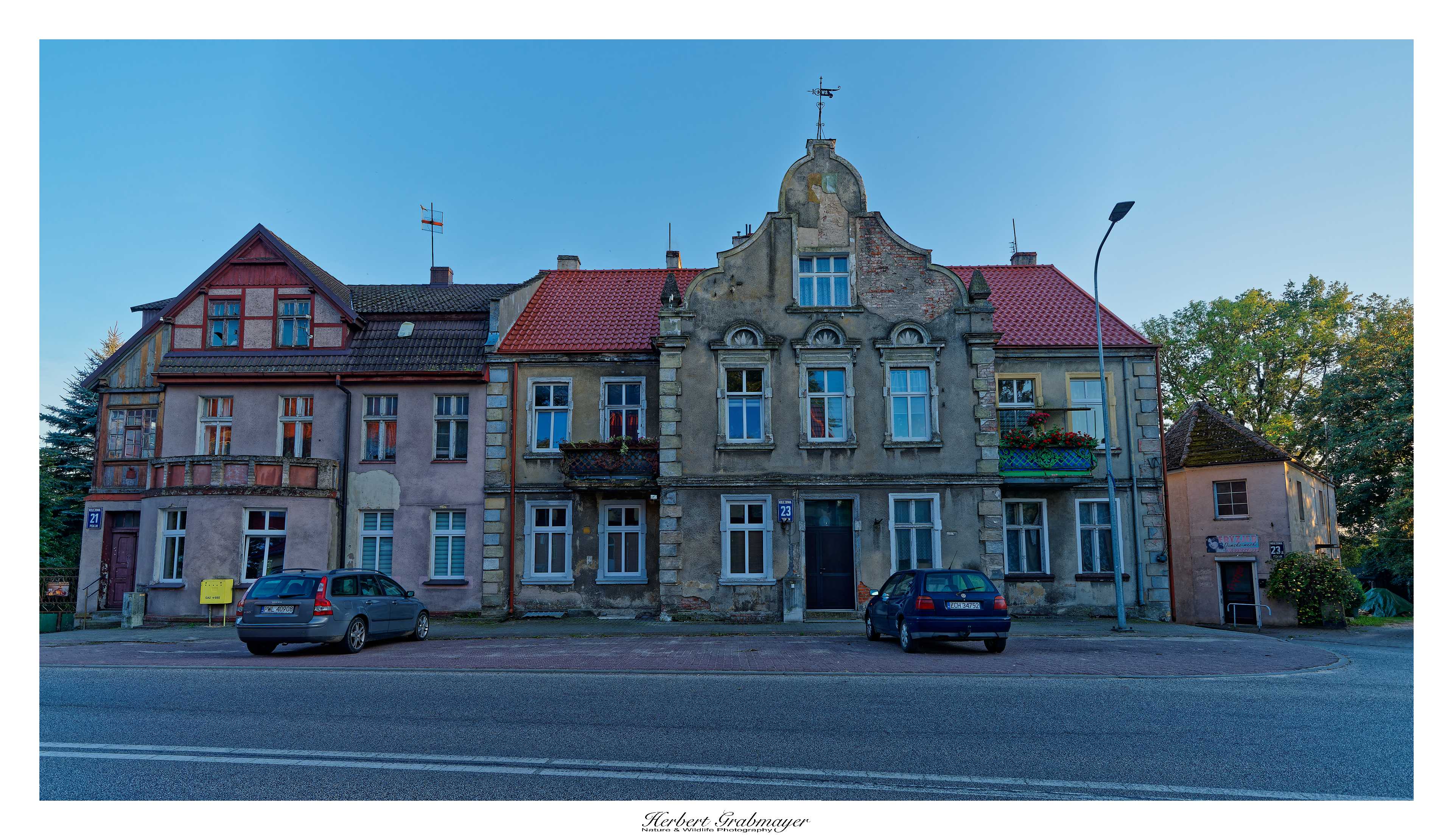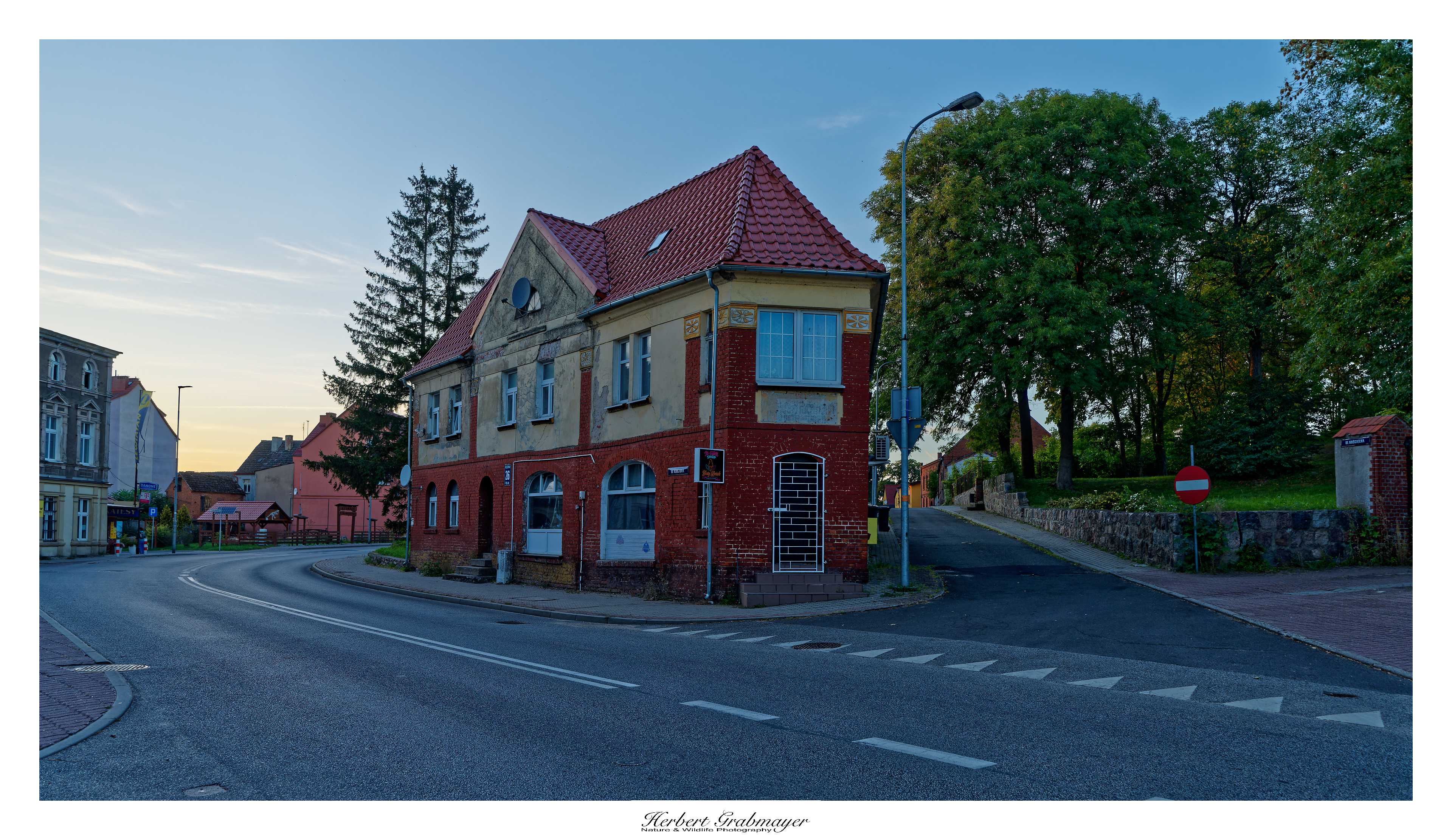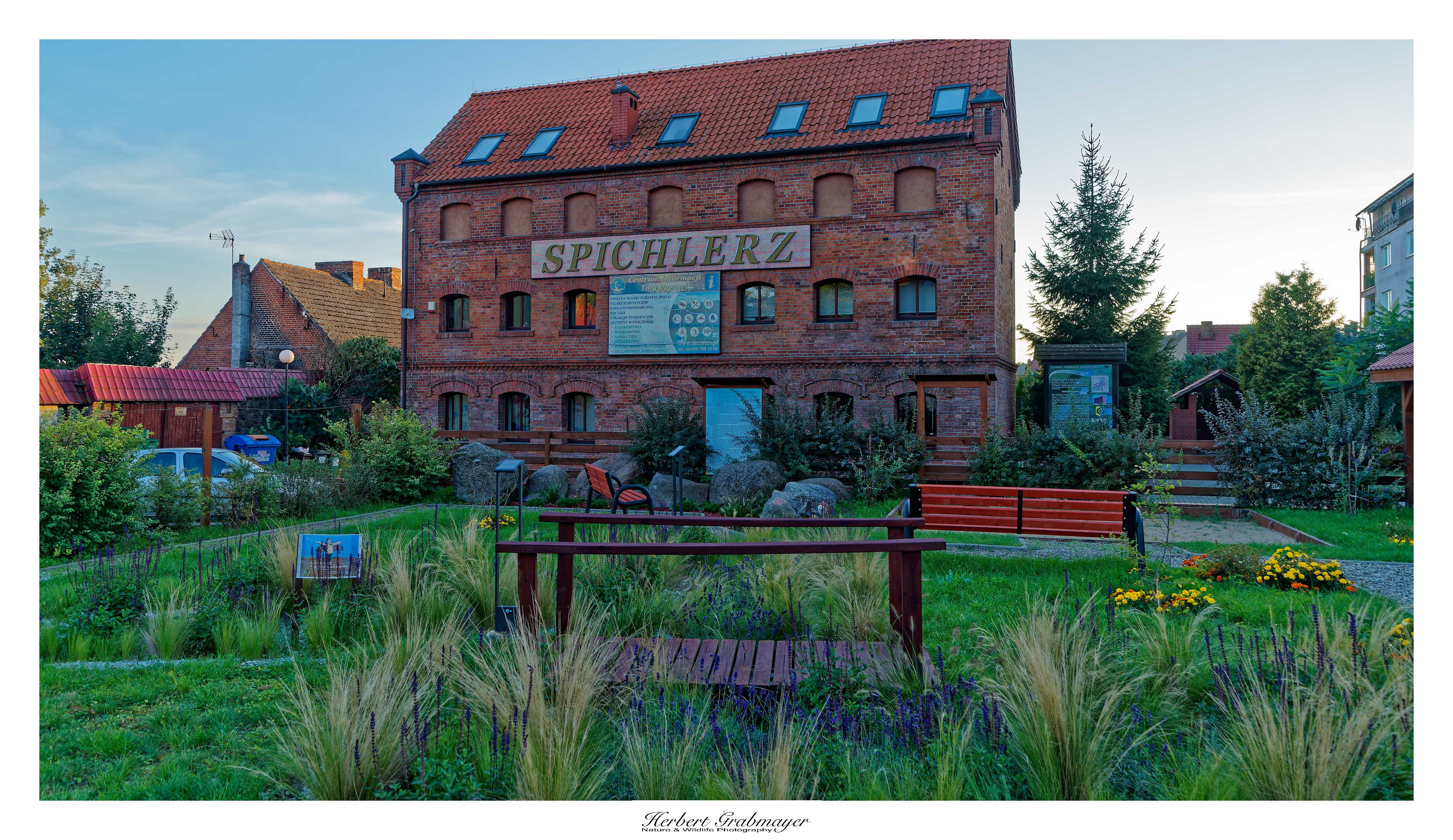 Die nacht verbrachte ich auf einem kleinen Campingplatz im Ort Drawa. Und machte noch einen Spatziergang in der Abendstimmung durch den Ort. Die Häuser sind teilweise typische lokale Bauform mit Backsteinen. Teilweise Bauten die an den Kommunismus erinnern. Alles in die Jahre gekommen und renovierungsbedürftig. Das ist mir schon bei der Anfahrt aufgefallen. Dies war bis jetzt die erste Gegend die mich an meine Anfangszeit in Nordostpolen vor 15 Jahren erinnert. Dafür hat die Nacht am Campingplatz 5,30 Euro mit Strom gekostet. In Karpacz waren es noch 12 Euro ohne Strom.