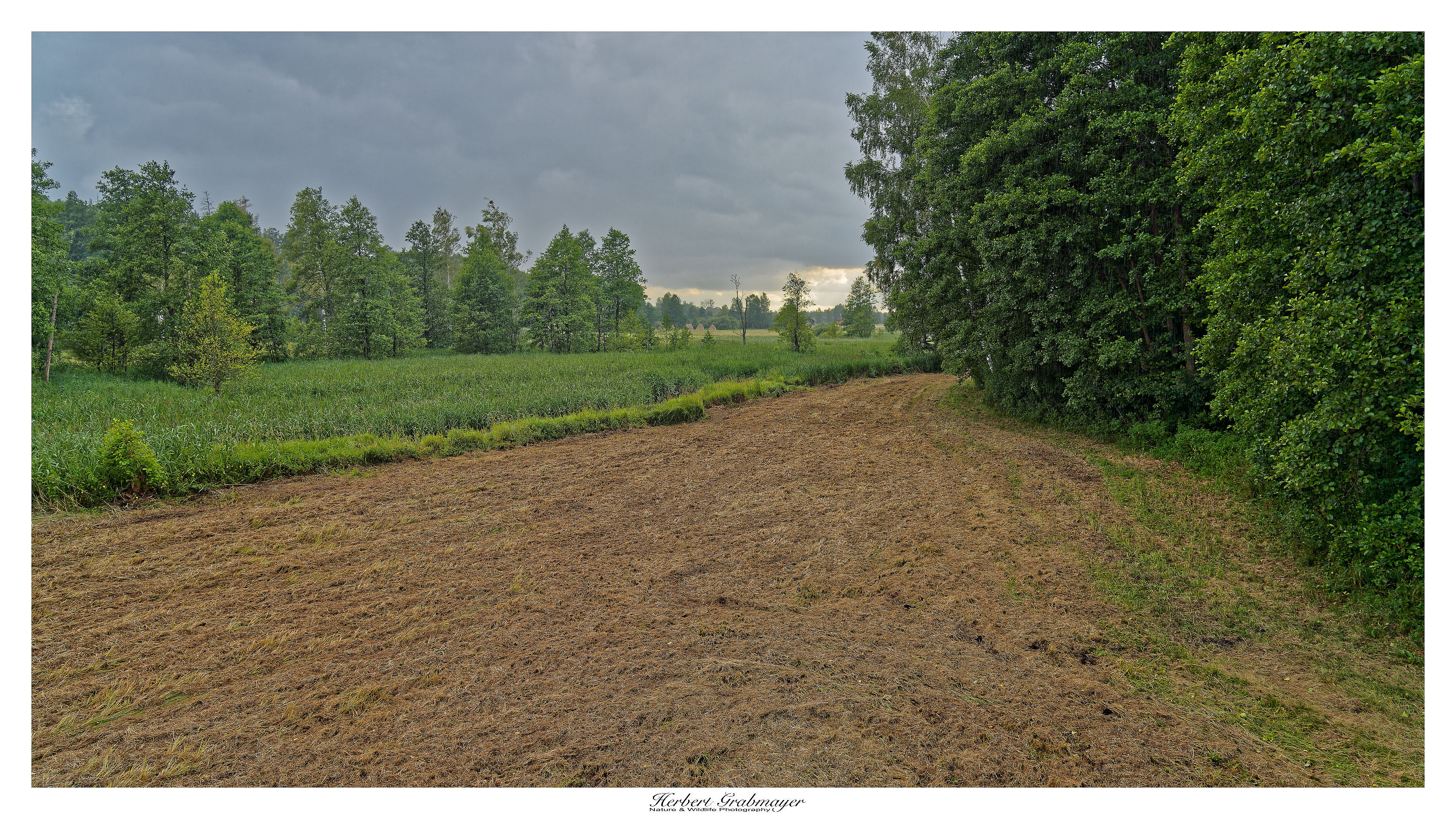 Ich versuchte noch einmal den Hirsch im Schilf zu bekommen. Es wurde nur Landschaft im Regen und nach dem Regen.