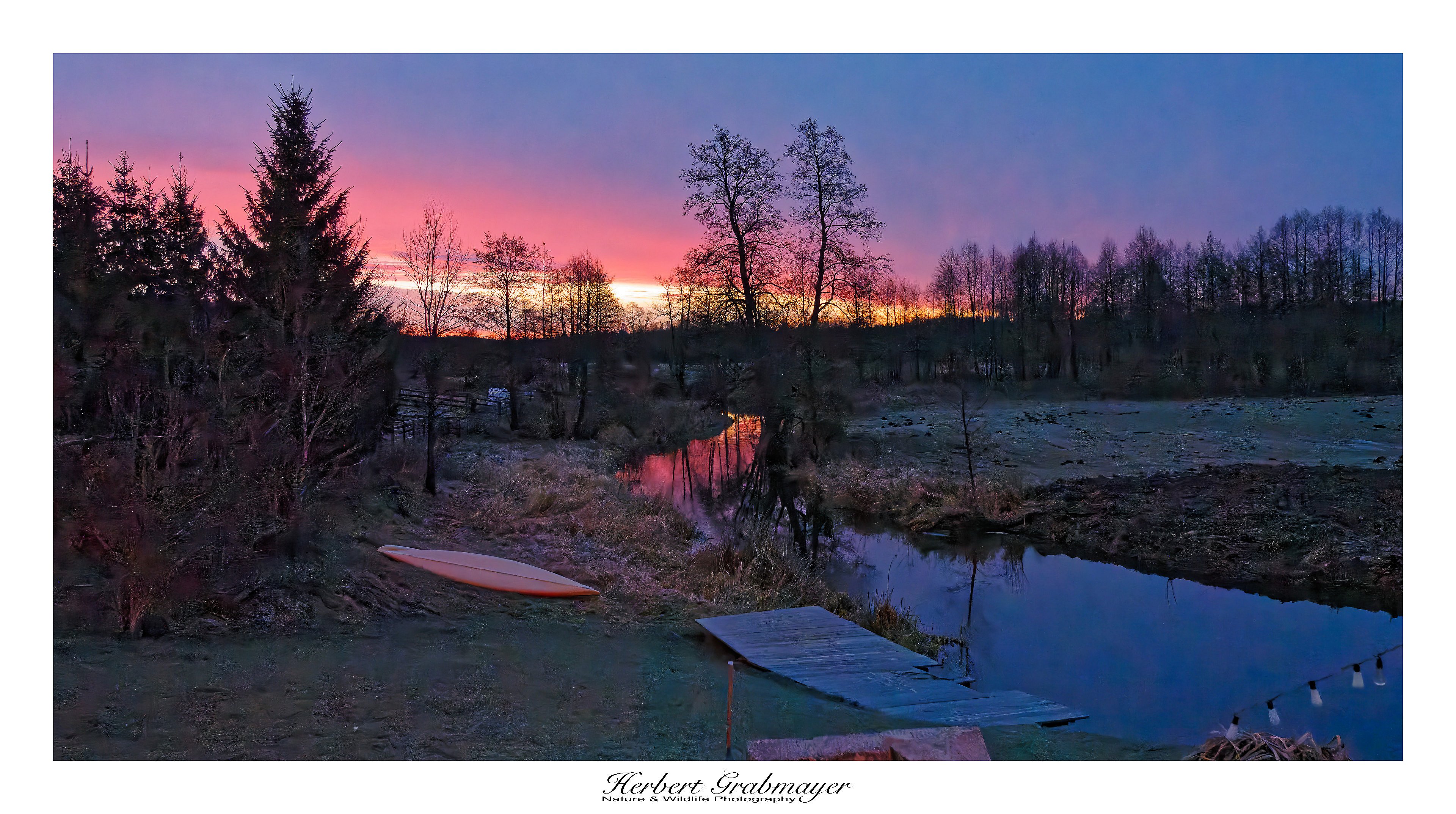 Ein frostiger sonniger Morgen mit Fuchs und Wisent auf der gefrorenen Lichtung. Es war einer der letzten kalten Tage mit -10 Grad morgens. Aber es hat sich ausgezahlt. Einer der Wisente kam an die Fotterstelle heran und ich konnte Aufnahmen aus ca. 30 Meter Entfernung machen. Bevor ich losfuhr gab es noch einen Stimmungsvollen Sonnenaufgang hinter dem Hotel.