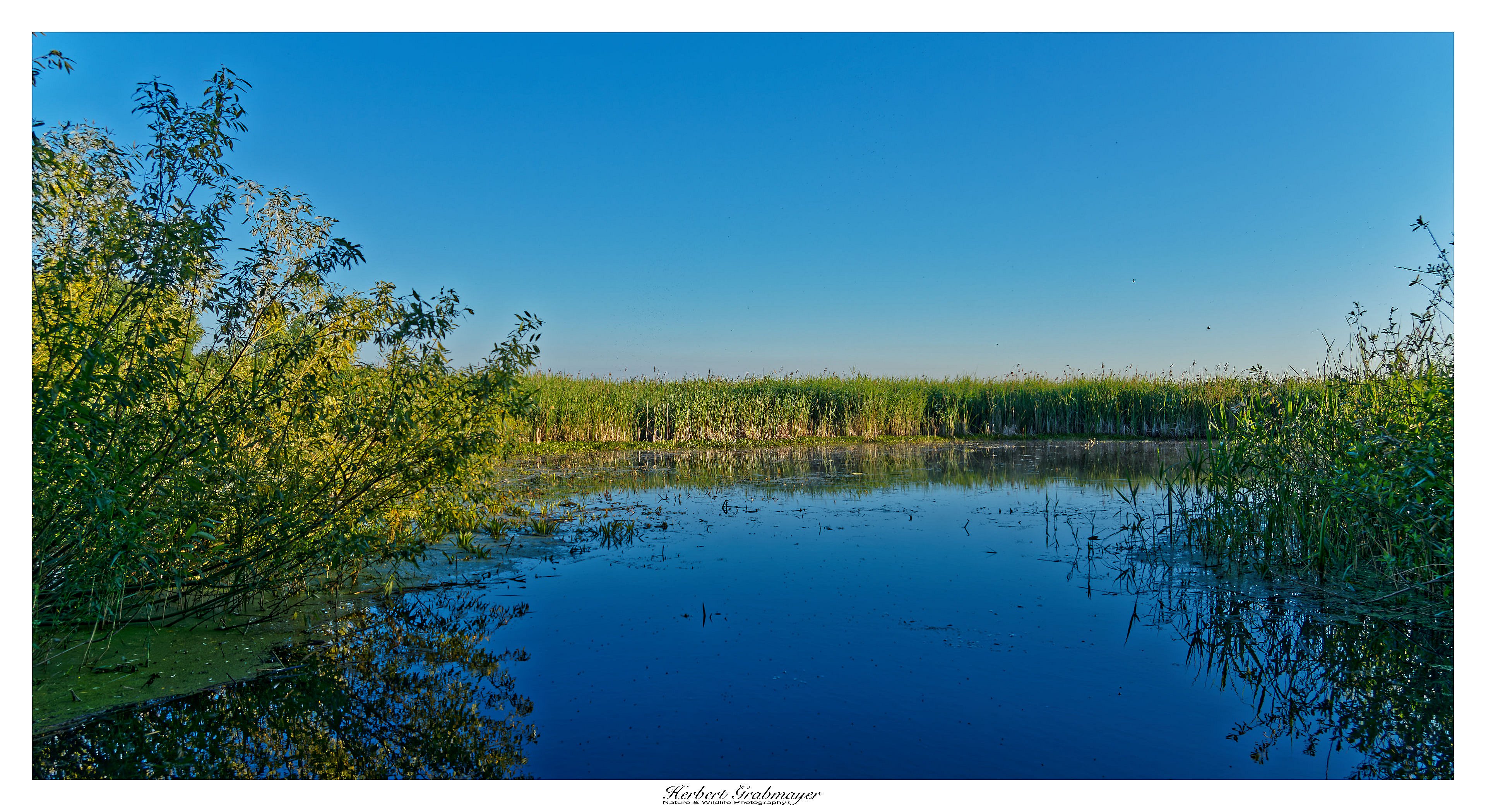 Drosselrohrsänger im Morgenlicht, diverse Singvögel und Höckerschwan mit 4 Jungen am Abend.