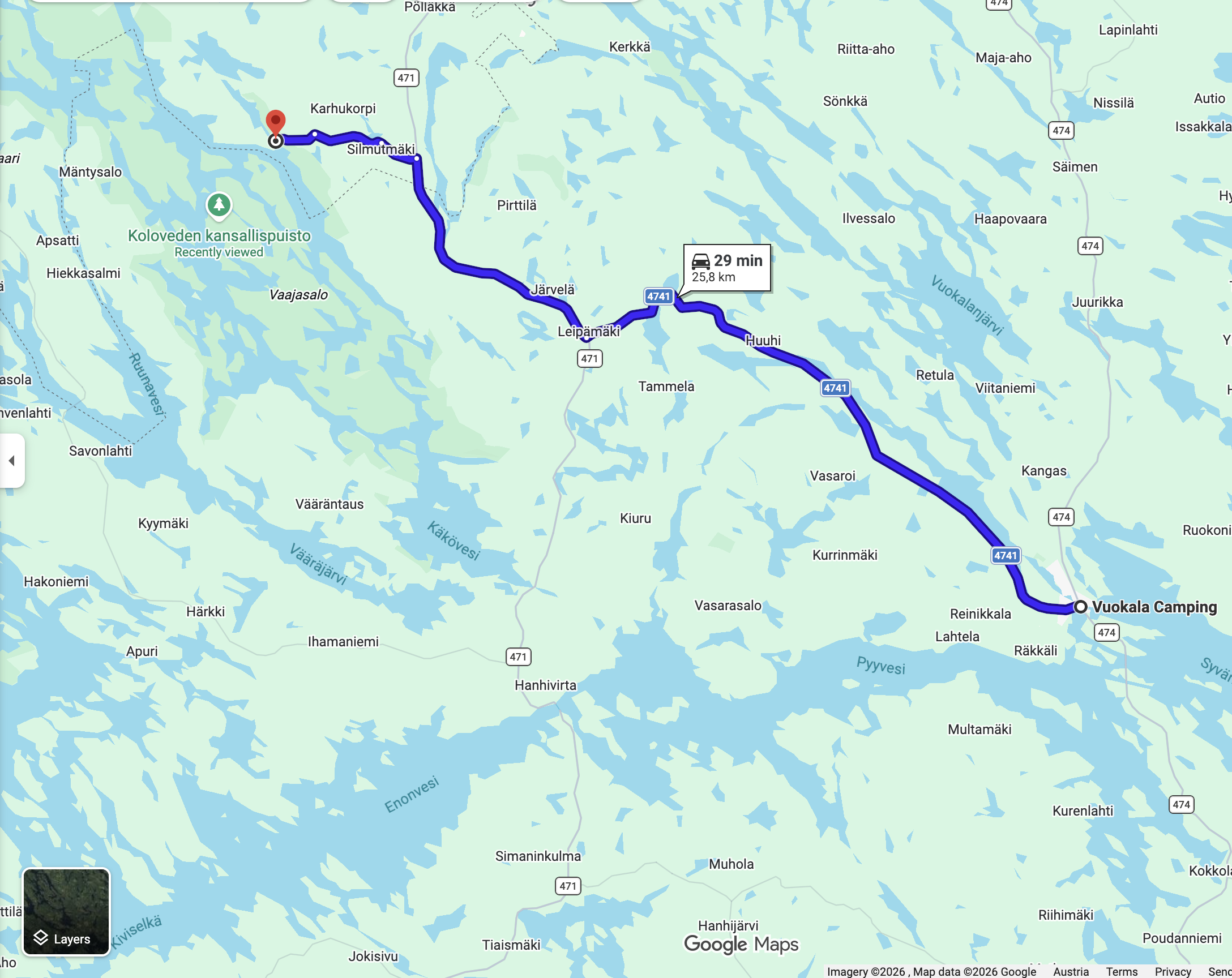 Montag ging es erst mal in den nur 20 km entfernten Kolovesi Nationalpark. Bekannt für die Saimaa Kegelrobben. Allerdings vom Land aus schwer zu erblicken. Der Nationalpark ist eher vom Kanu aus interessant. Seen eingebettet in steile Ufer und damit am Land schwierig zu erkunden. Habe den einfachen Weg zu einen Uferabschnitt genommen aber keine Robben gesehen. Dafür traf ich auf zwei Mühlviertler. Die ersten Österreicher denen ich auf der Reise begegnet bin. Gestern hatte ich am Campinplatz einen Finnen der von Oulu mit dem Rad unterwegs war.
