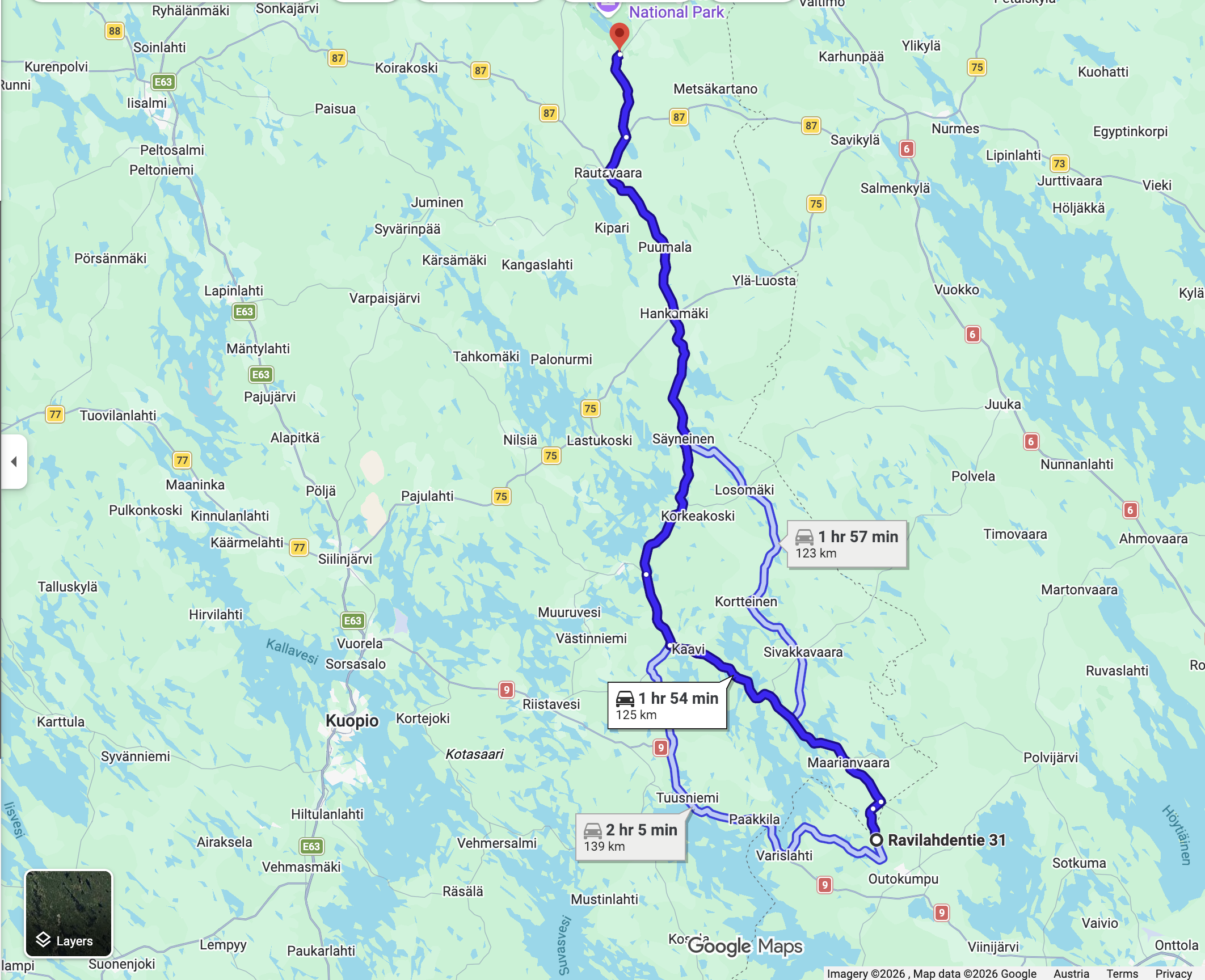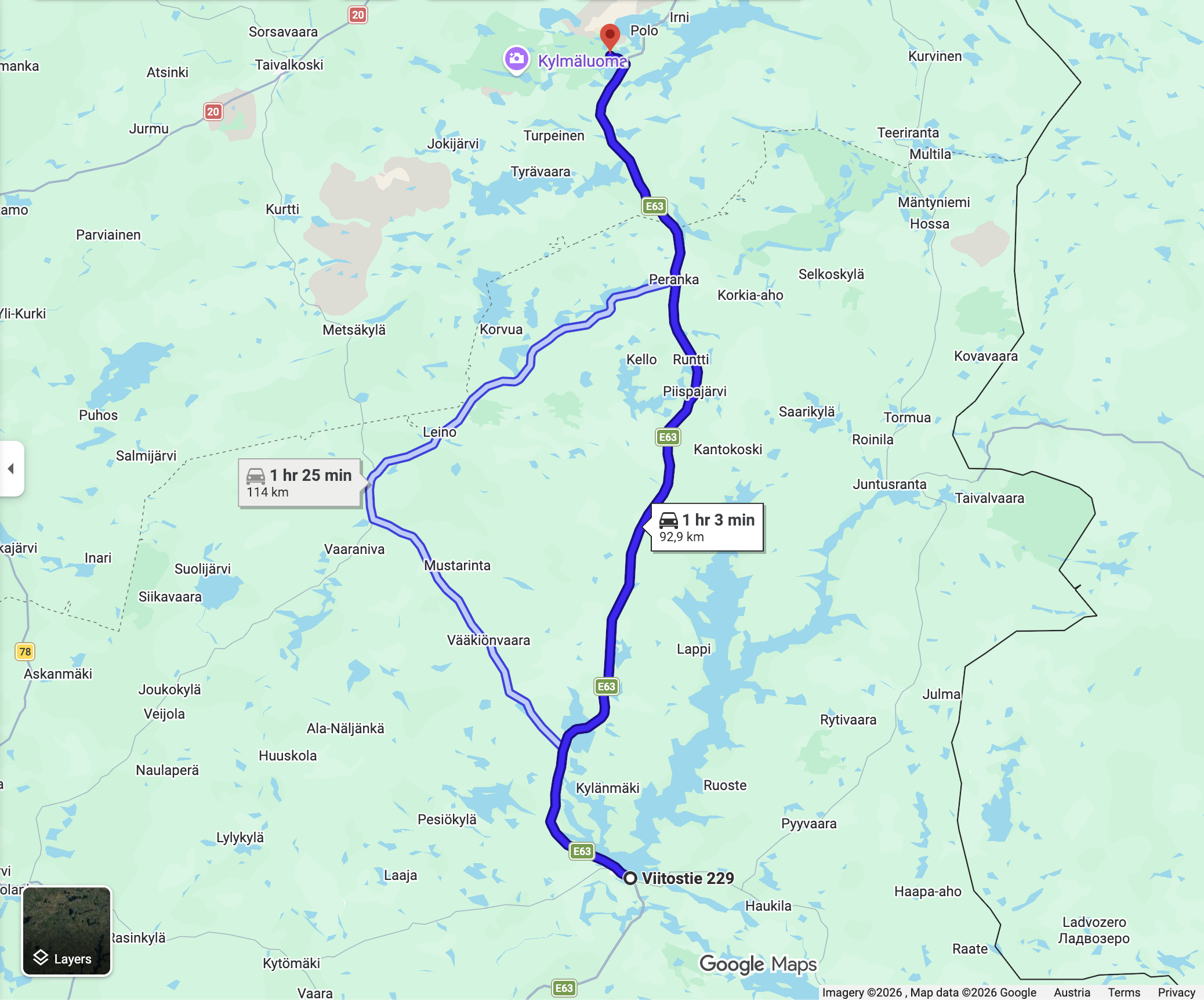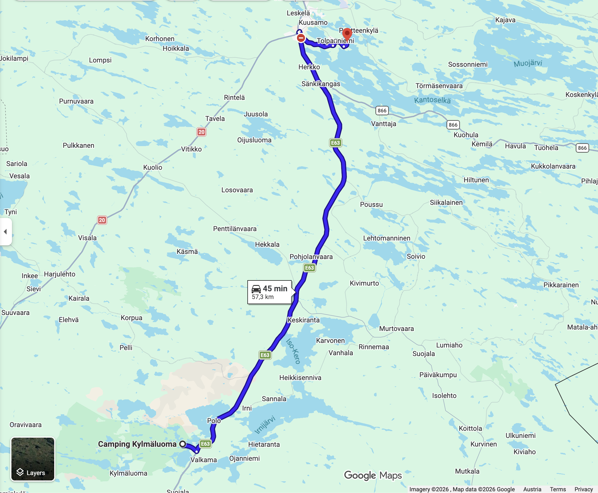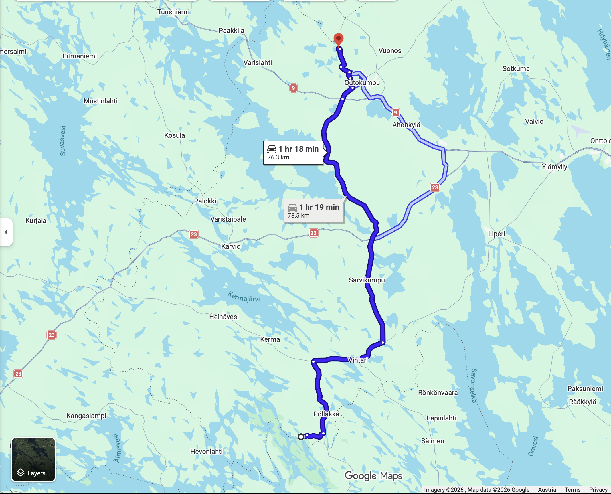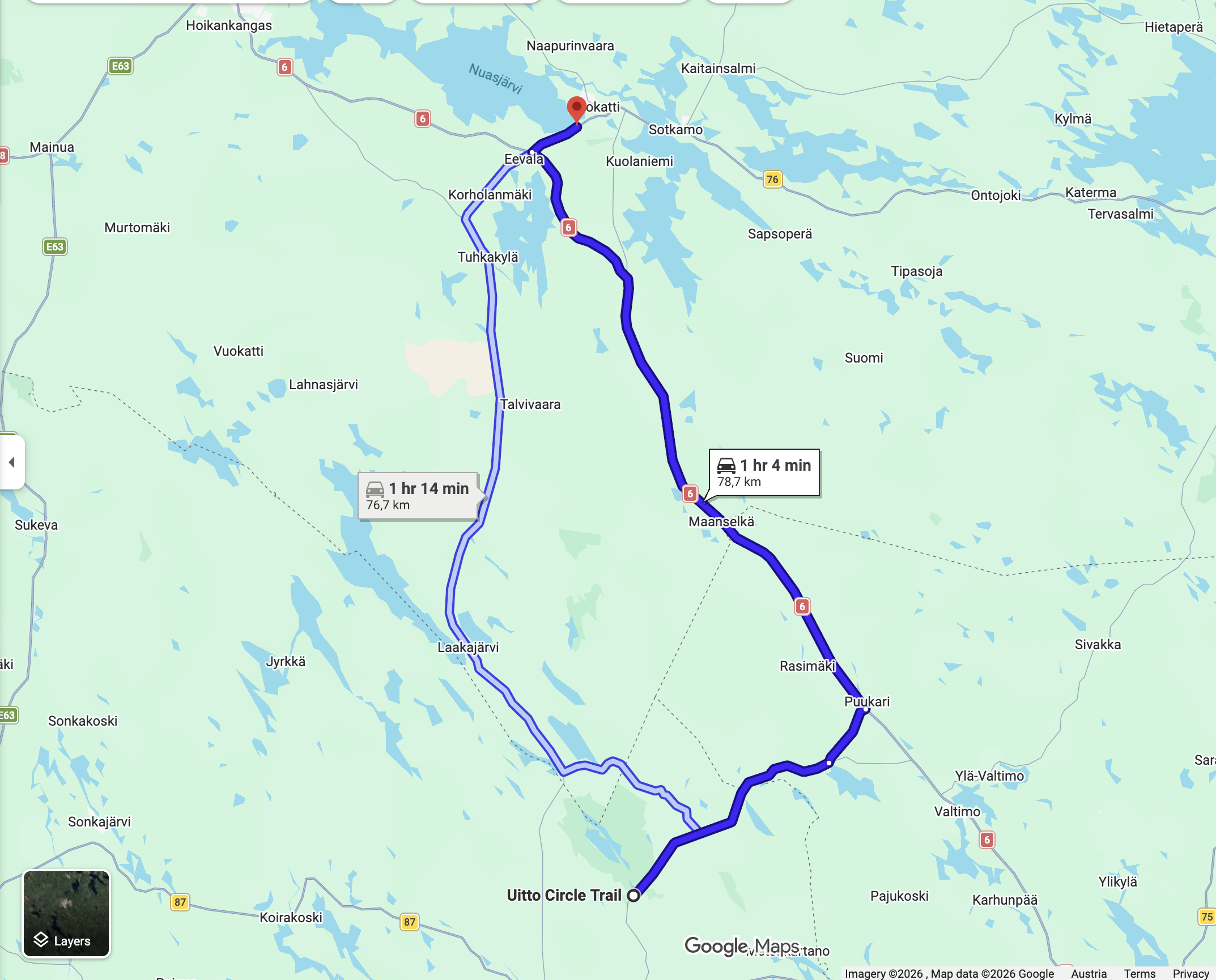 Die Abfahrt am Mittwoch begann mit einer 20 km Schotterstrecke mit kurzen Anstiegen bis zu 10 Prozent. Die Alternative wäre 10 km zurück und ein Umweg von 50 km. Also mal durch wozu hat man ein Auto mit mehr Federweg. Danach ging es noch 50 km hügelauf hügelab durch die Wälder Finnlands bis nach Voukatti. Es ist ein Winterskigebiet. Wie ich später dann noch mit bekam befindet sich dort das Olympic Training Center für die Skandinavischen Sportler. Für österreichische Verhältnisse ist es für alpin zwar nur ein Hügel. Aber wird vor allem für die nordischen Disziplinen genutzt. Laut meiner Planungsapp sollte es schon möglich sein von hier aus die Mittsommernacht zu sehen. Das die Sonne eventuell nur mehr teilweise untergeht. Leider zog es gegen 22:00 zu und der Sonnenuntergang um 23:45 war nicht mehr sichtbar. Aber es gibt sicher noch genug Möglichkeiten dafür.