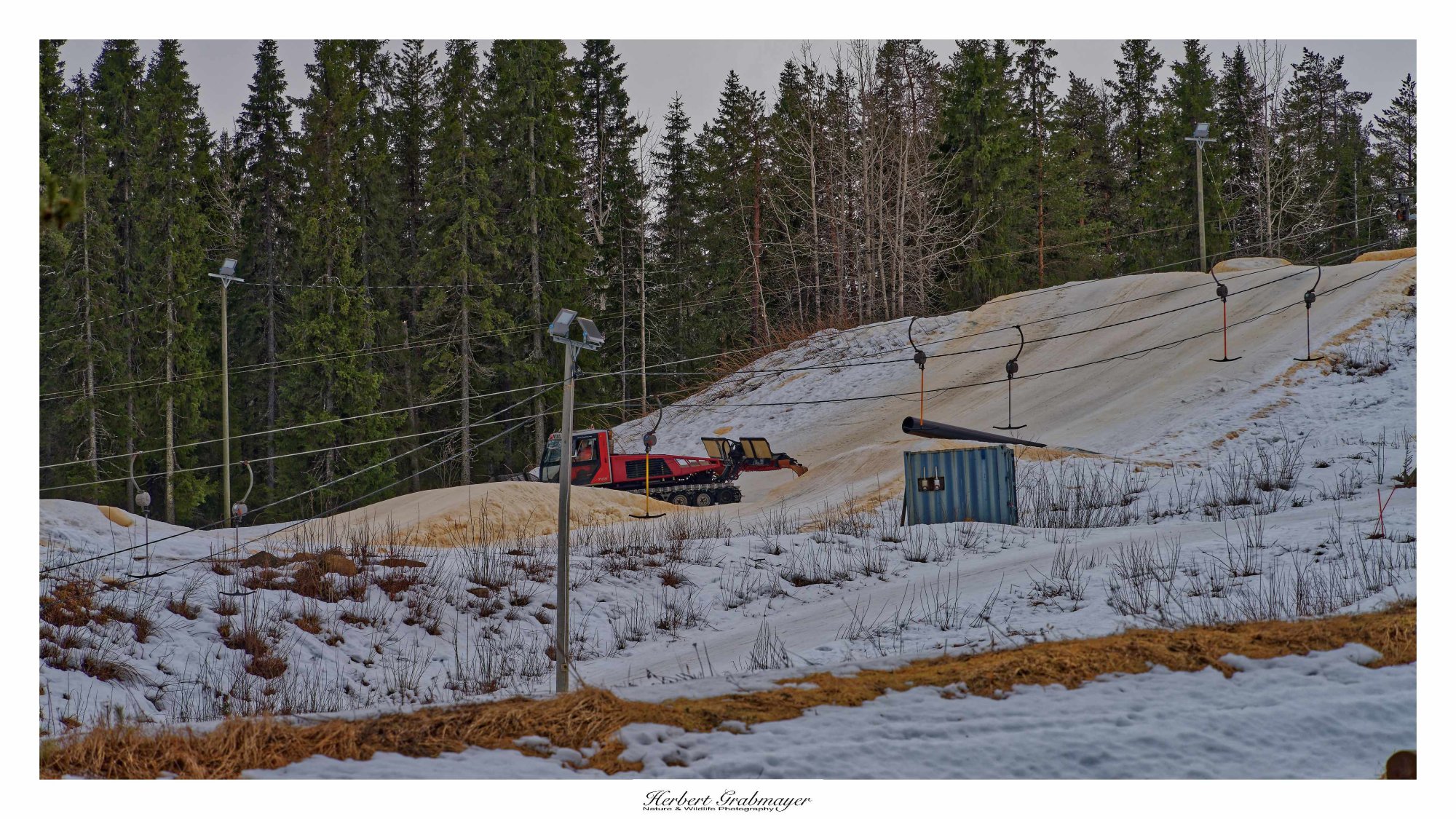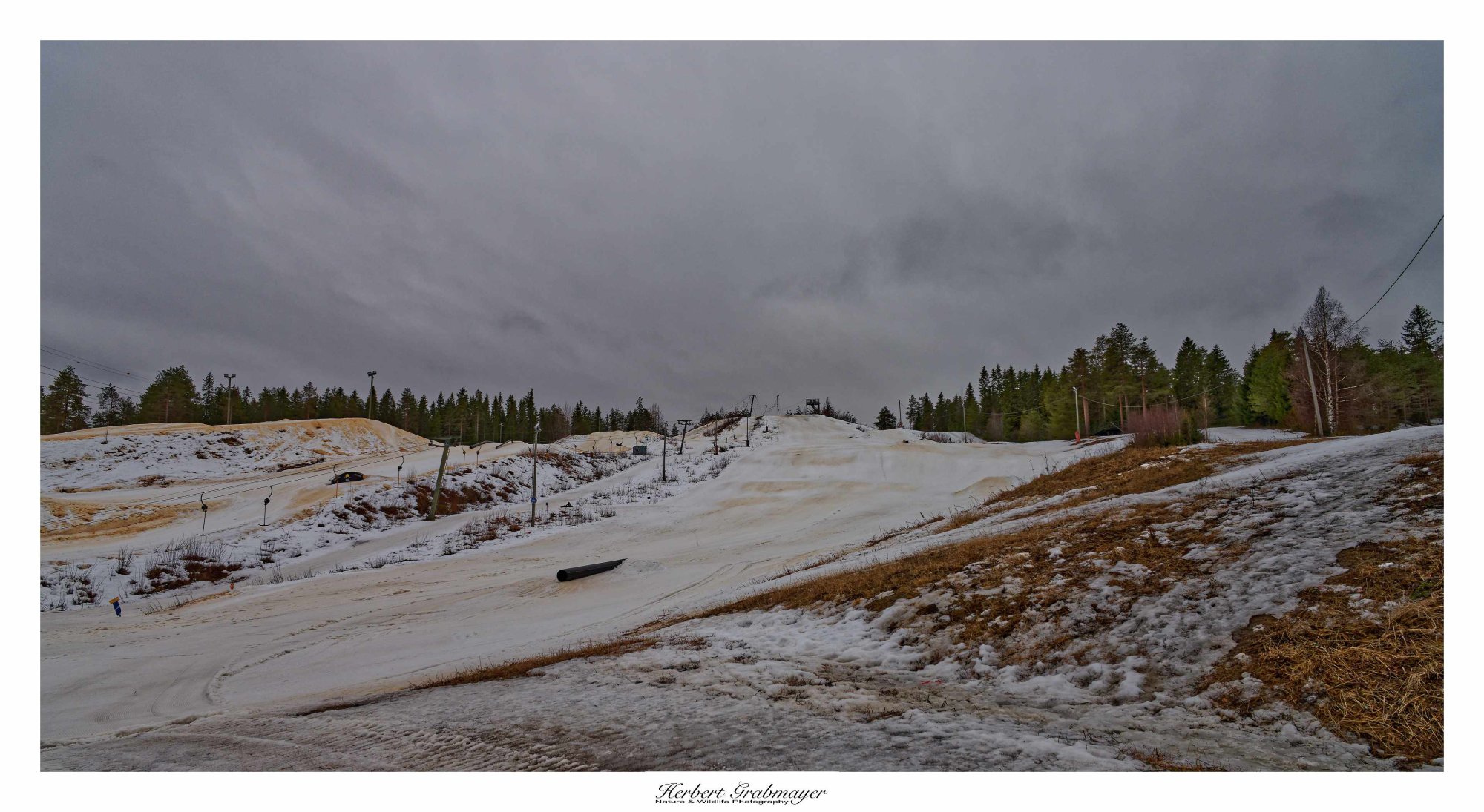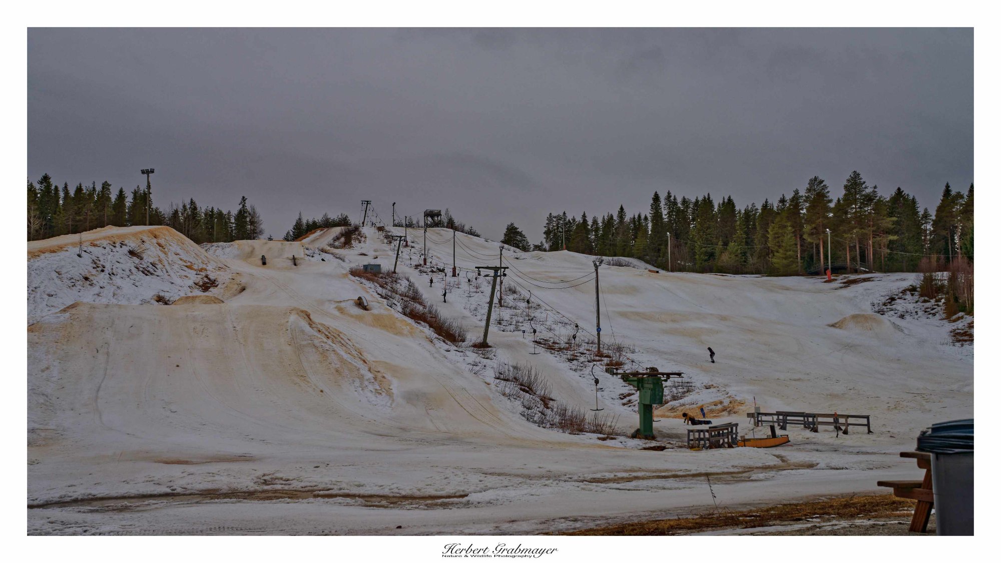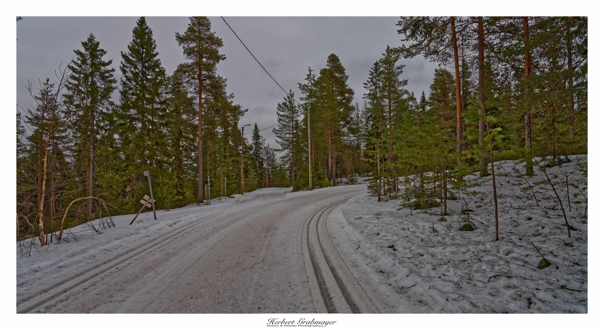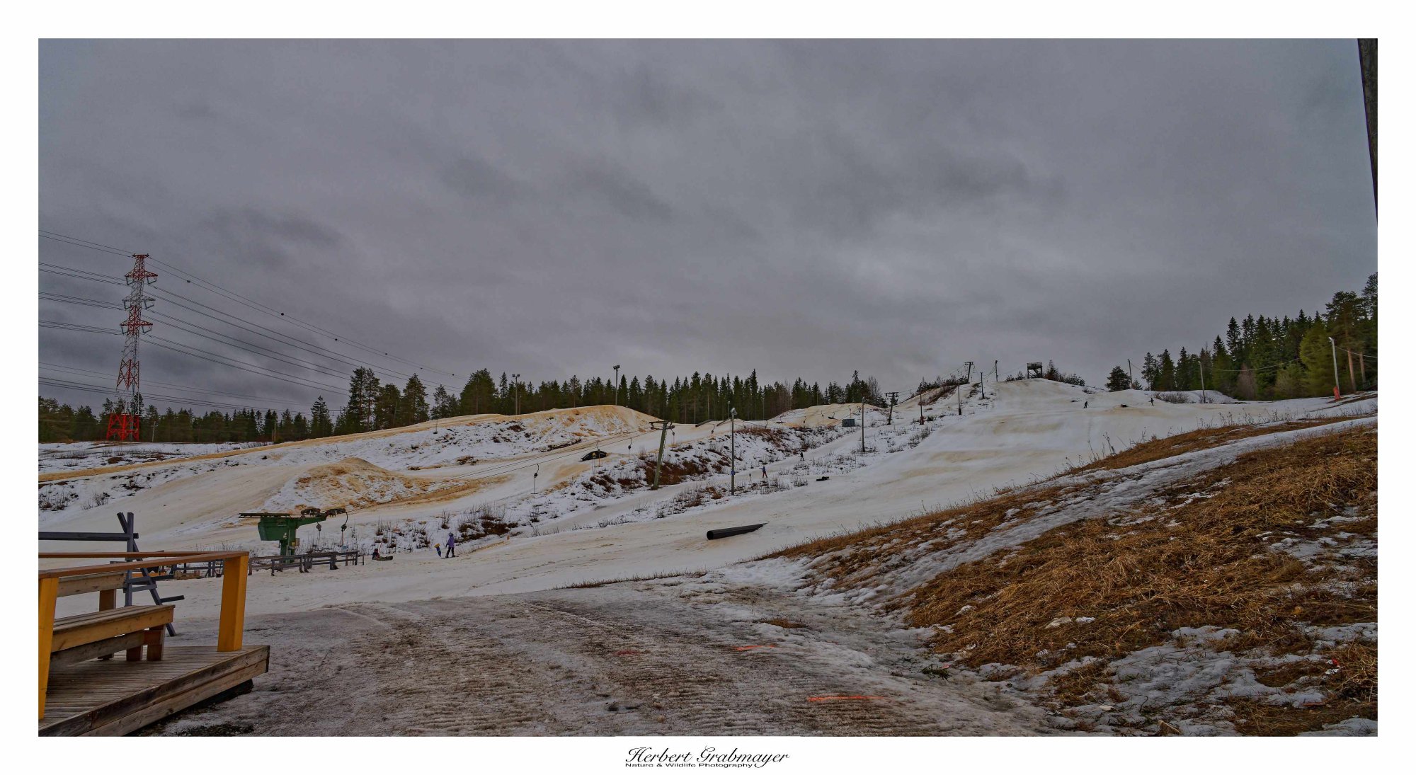 Nach dem Einkauf ging es auf die nächste Etappe. Zwischendurch machte eich an eine Strand rast an dem es einen Aussichtsturm geben sollte. War aber keiner zu finden. Also weiter zum Schlafpaltz bei einem kleinen Skigebiet. Der Schnee wird schon weniger, aber es werden die letzten Tage noch genutzt. Die Wanderwege sind noch verschneit und mit Loipen ausgestattet. Teilweise spazierte ich am Rande der Piste entlang.