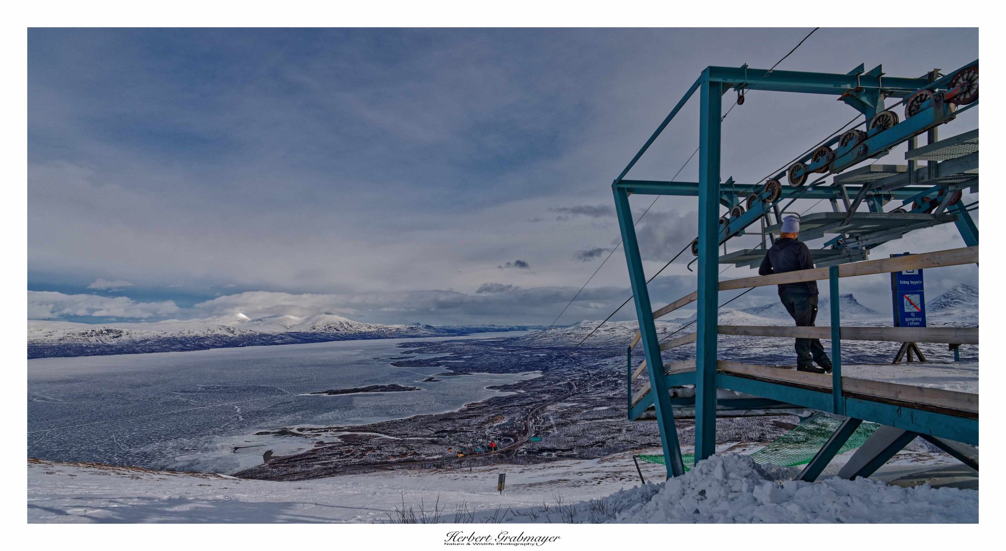 Nach einer frostigen Nacht mit -10 Grad ging es in den Abisko Nationalpark. Zuerst ein bischen den kleinen Ort erkundigt. Dann ging es weiter zum Parkplatz von Touristeninformationszentrum. Von dort ein Stück zu Fuß zum Sessellift zur Aurora Sky Station. Ein traumhafter Blick in die Gegend. Auch tagsüber ohne Aurora. Die wird es heute nicht geben da zu viele Wolken am Abend.