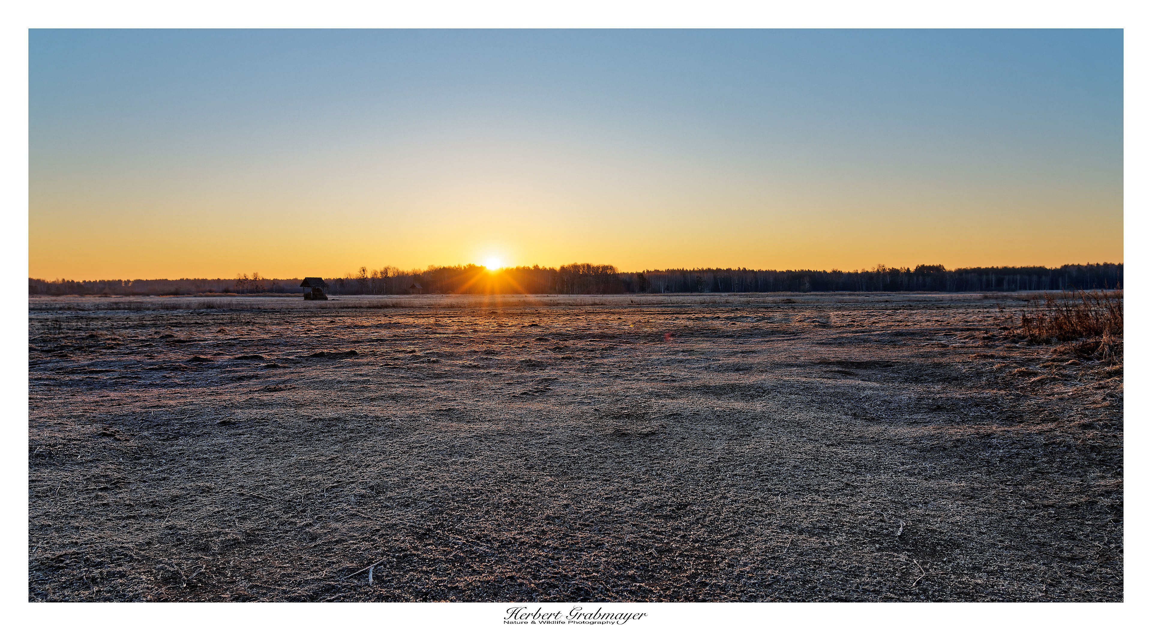 Wisent im Morgen- und Abendlicht. Dazwischen Vögel am See